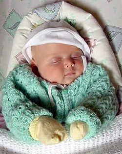 Kiara at about five weeks Looking well and wrapped up as if she were here, 52 degrees north, instead of on the equator!